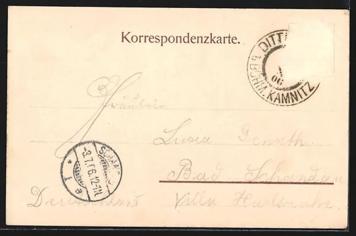 alte Ansichtskarte, gelaufen 1906, Briefmarke entfernt, guter Zustand