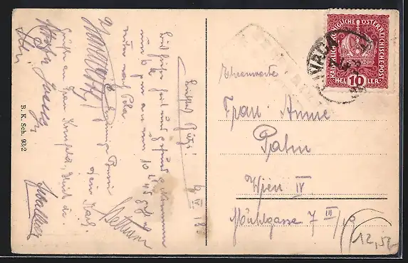 alte Ansichtskarte, gelaufen 1918, Ecken bestoßen, Abriebspur oben