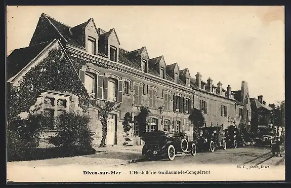 AK Dives-sur-Mer, L`Hostellerie Guillaume-le-Conquérant avec voitures anciennes