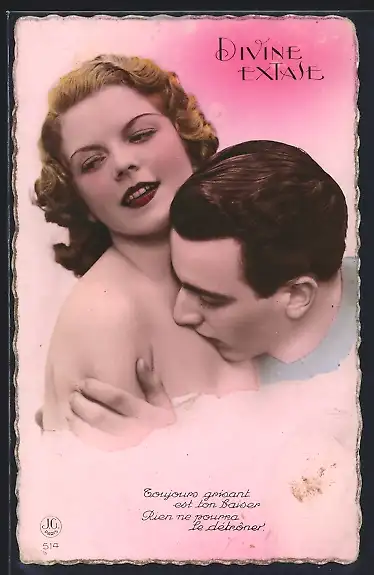 AK Divine Extase, Mann liebkost das Dekoltée seiner Liebsten