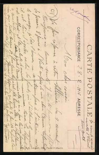ungelaufen, Rückseite beschrieben 1916, guter Zustand
