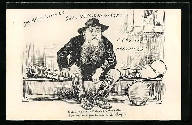 AK Dix Mille contre un, Ohé Napoléon usagé!, Mann im Gefängnis, Karikatur
