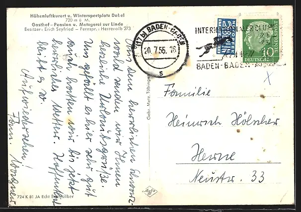 gelaufen 1955, Eckknick unten li. u. oben re., guter Zustand