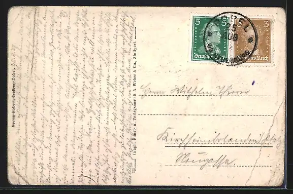 alte Ansichtskarte, gelaufen, Eckknicke oben und unten