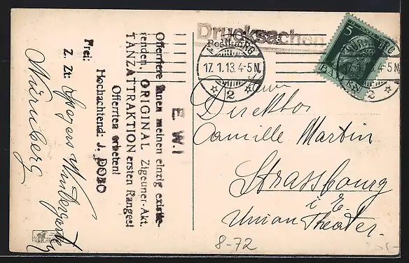 alte Ansichtskarte, gelaufen 1913, guter Zustand