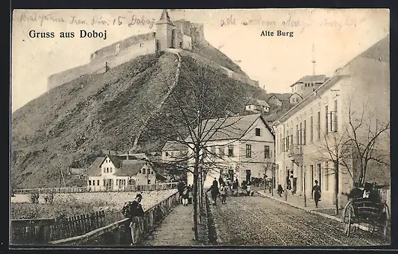 AK Doboj, Strassenpartie mit Alte Burg