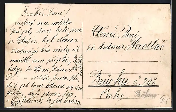 Personenbezogene Daten auf der Rückseite der Karte wurden durch blauen Textmarker unkenntlich gemacht. Die blauen Stellen sind auf die Vorderseite durchgeweicht und wirken sich negativ auf das Postkartenfoto aus
