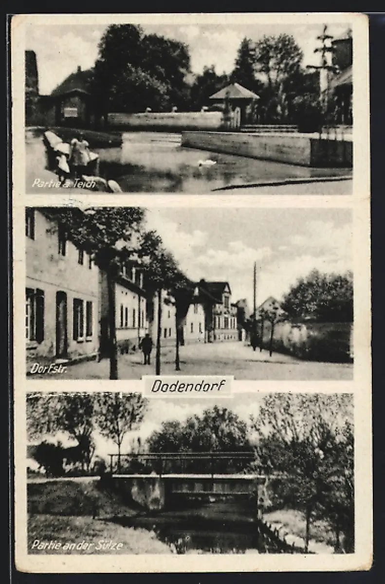 AK Dodendorf, Dorfstrasse, Partie am Teich, Partie an der Sülze