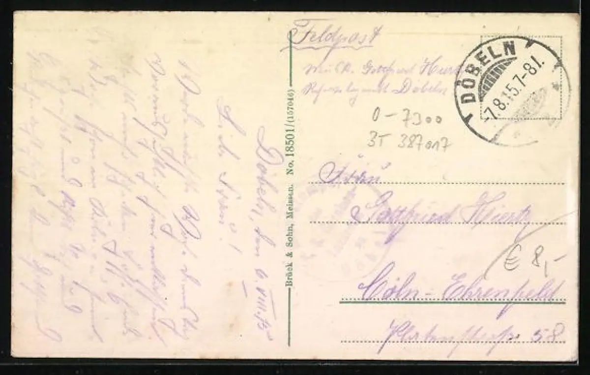 gelaufen 1915, rückseitig Klebe- und Papierreste, guter Zustand