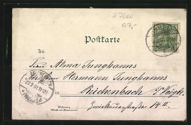 alte Ansichtskarte, gelaufen 1901, Eckknicke unten, guter Zustand