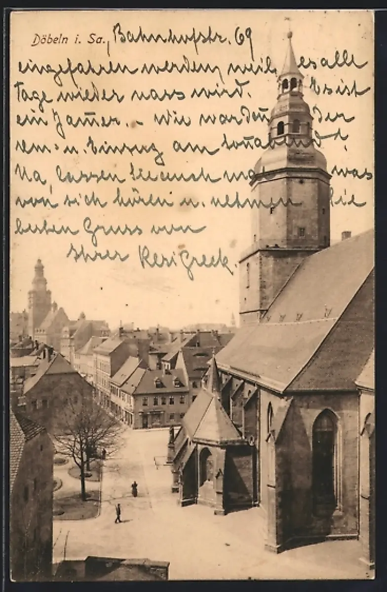 AK Döbeln i. Sa., Blick auf die Kirche aus der Vogelschau