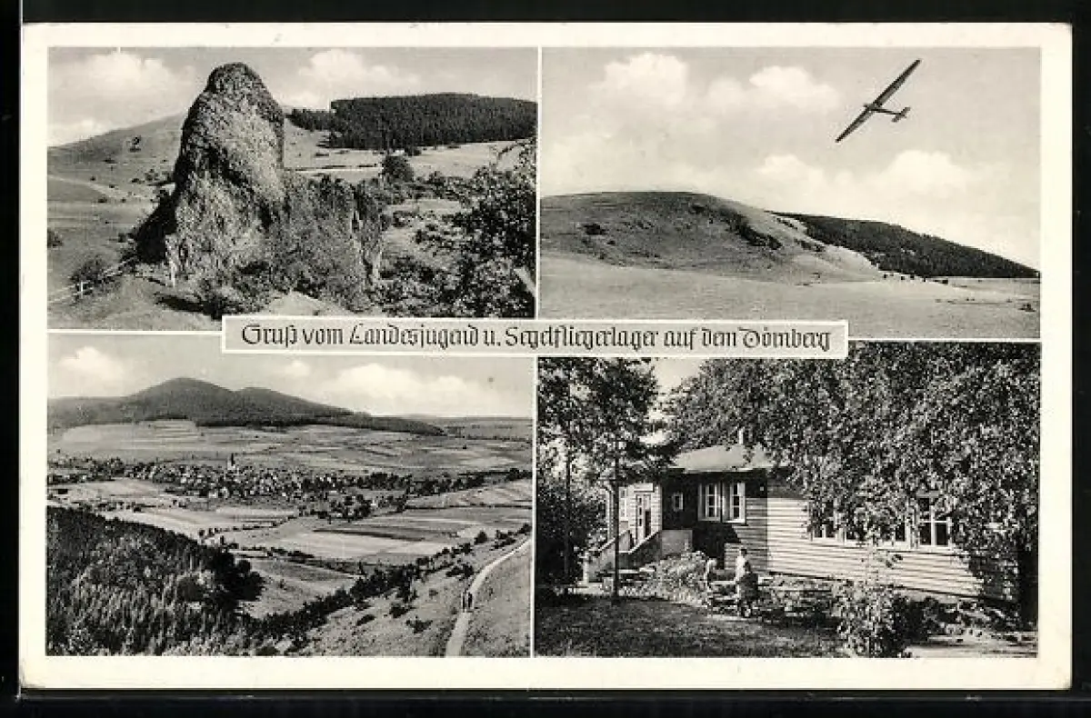AK Dörnberg / Kassel, Landesjugend- und Segelfliegerlager, Felsen, Segelflugzeug, Unterkunft
