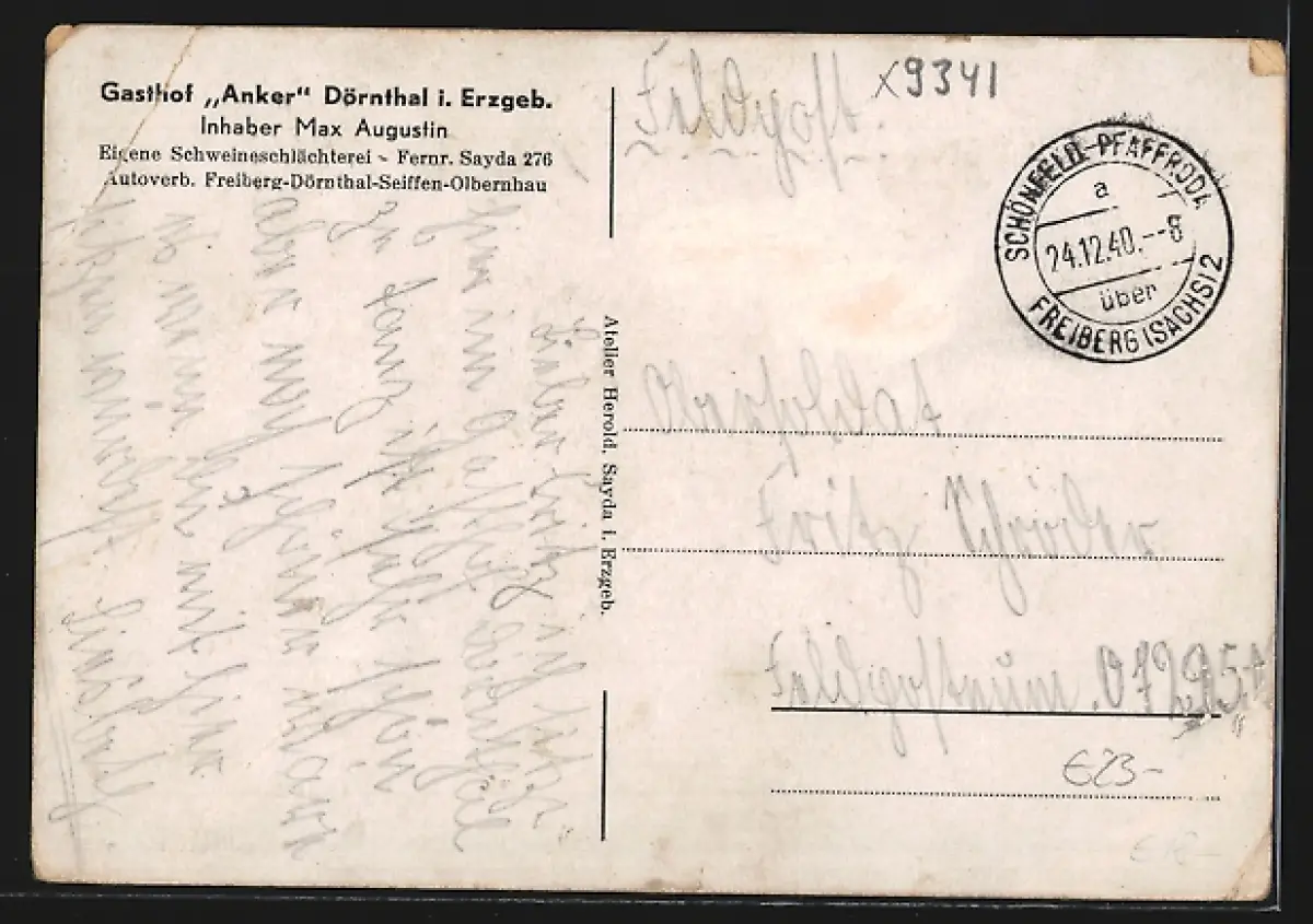 AK Dörnthal i. Erzgeb., Gasthof Anker, Original Erzgeb. Saal, Inh. Max Augustin