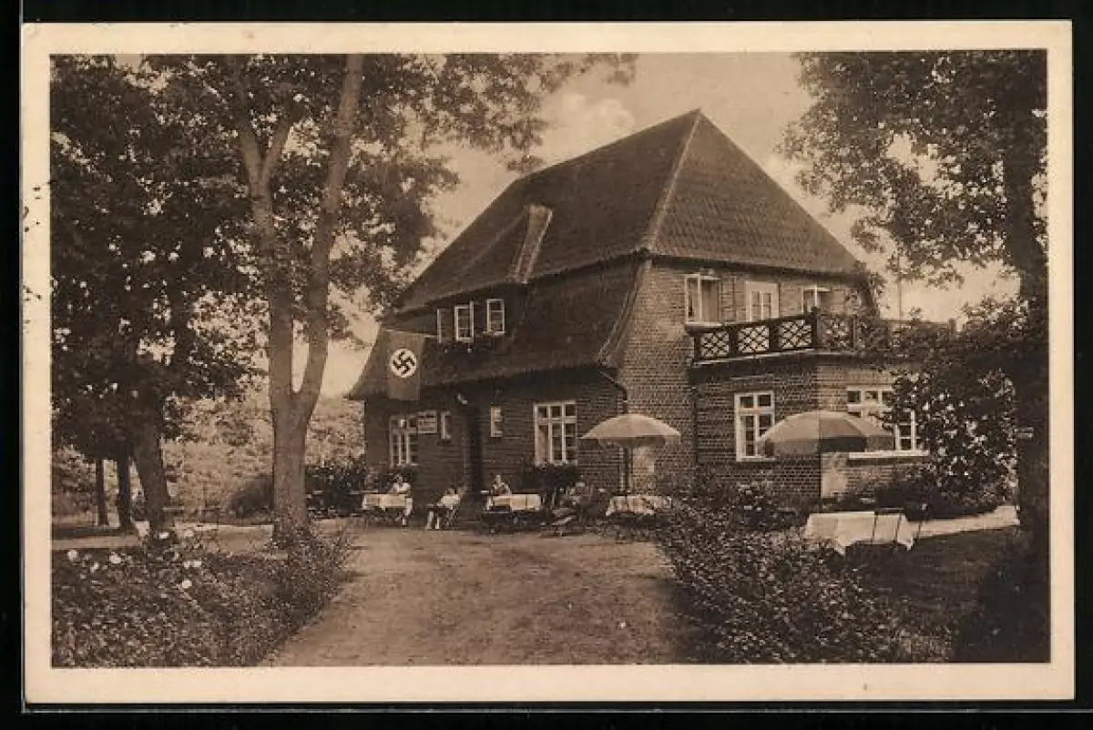 AK Dörverden, Pension und Kaffeehaus Alte Eichen, Inh. Frau Johanne Lennartz, -Fahne