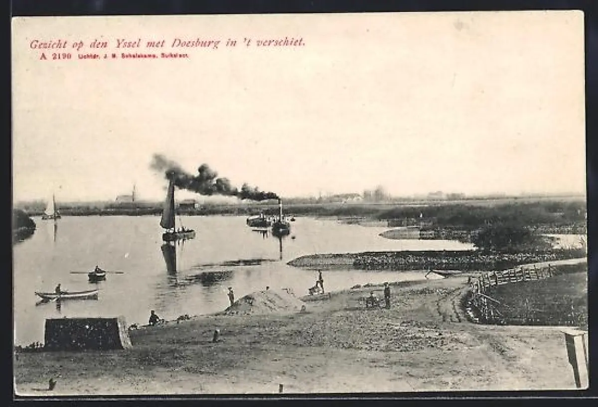 AK Doesburg /Yssel, Gezicht op den Yssel met Doesburg in `t verschiet
