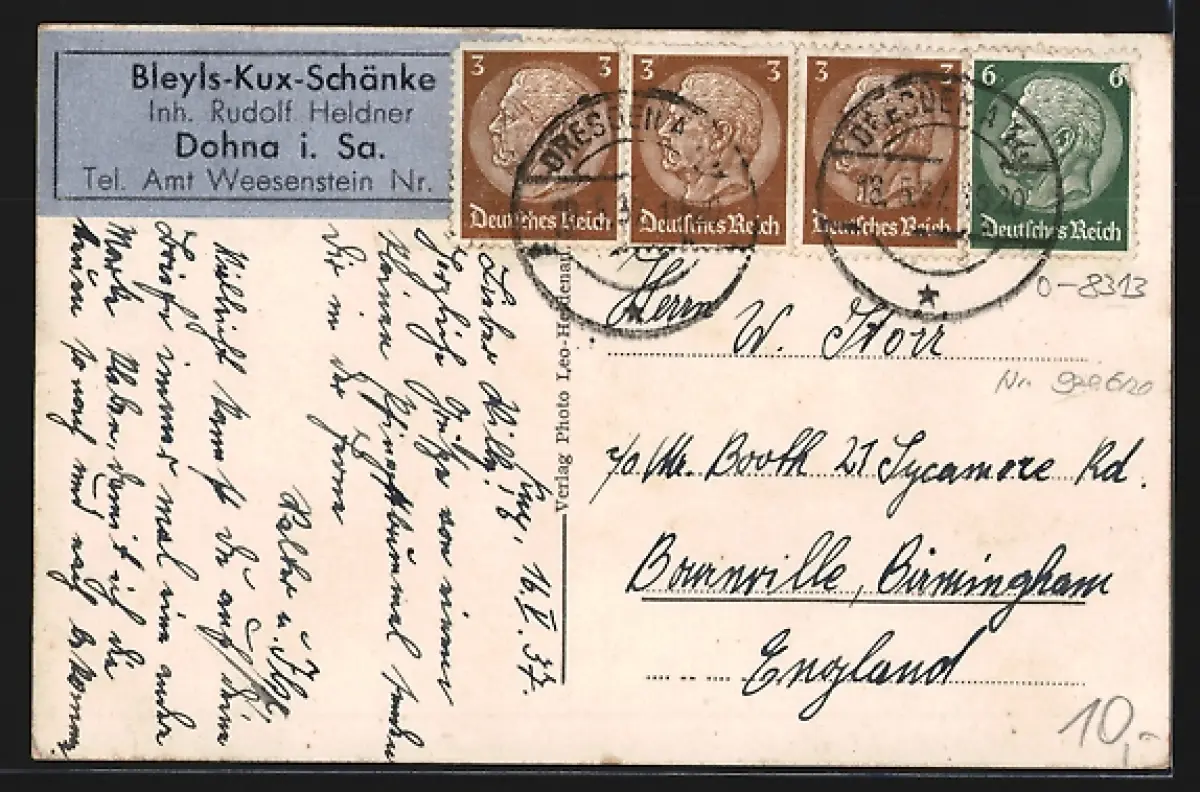 AK Dohna i. Sa., Bleyls-Kux-Schänke, Inh. Rudolf Heldner