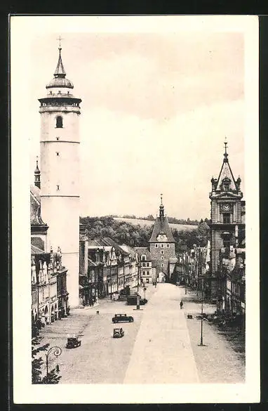 AK Domazlice, Strassenpartie mit Turm