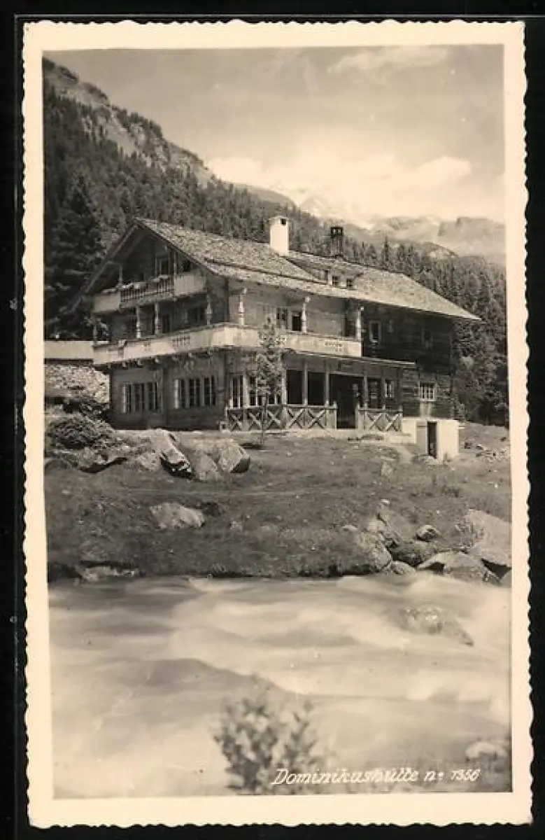 AK Dominikushütte mit Blick in die Berge