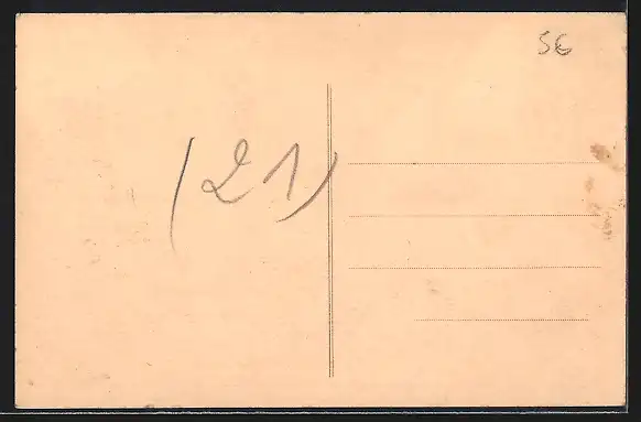 Personenbezogene Daten auf der Rückseite der Karte wurden durch blauen Textmarker unkenntlich gemacht. Die blauen Stellen sind auf die Vorderseite durchgeweicht und wirken sich negativ auf das Postkartenfoto aus
