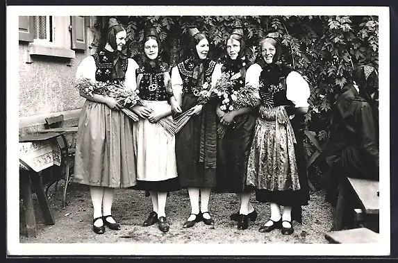 AK Donaueschingen, Frauen in Trachten von Neustadt und Donaueschingen im Schwarzwald