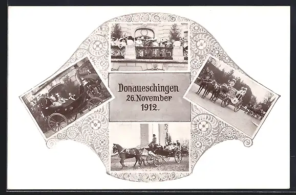 AK Donaueschingen, Königlicher Besuch 26. November 1912, Festpostkarte