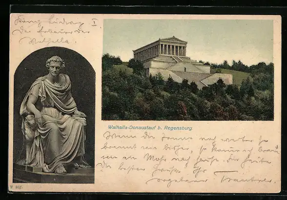 AK Donaustauf, Blick auf Walhalla und Denkmal könig Ludwig I. v. Bayern