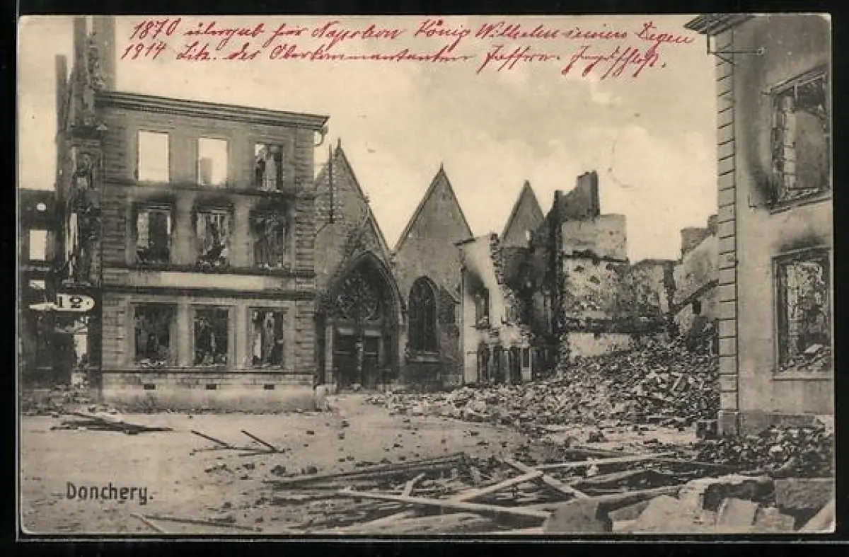 AK Donchery, Blick auf die zerstörte Kirche