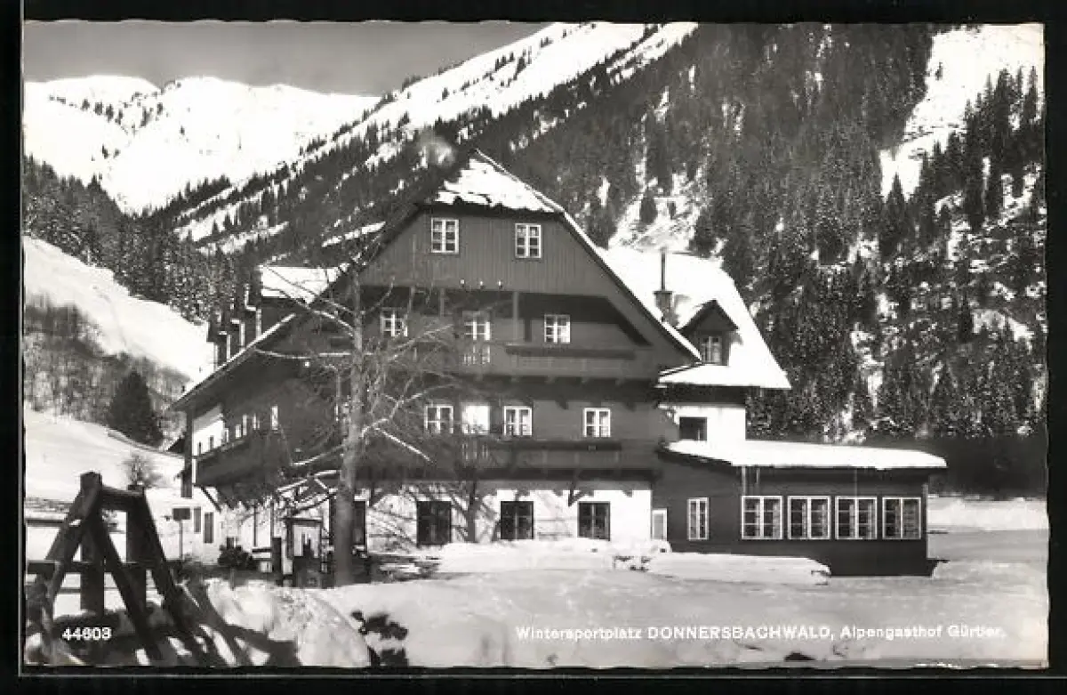 AK Donnersbachwald, Wintersportplatz mit Alpengasthof Gürtler im Schnee