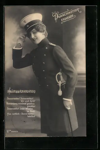 AK Donnerwetter tadellos, Soldatin in Uniform mit Schirmmütze, Lied mit Noten