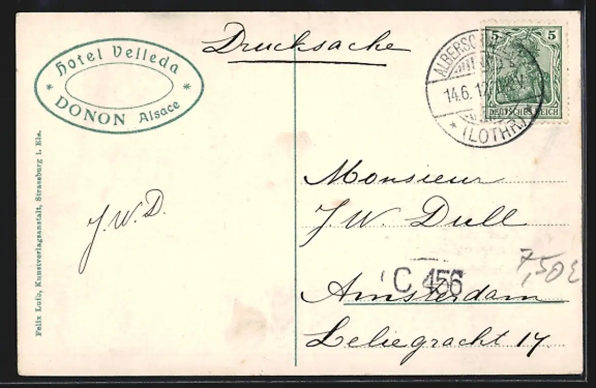 gelaufen 1912, Eckknick unten rechts, guter Zustand