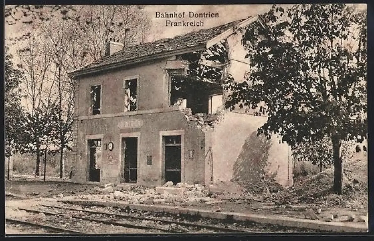 AK Dontrien, Zerstörter Bahnhof vom Krieg