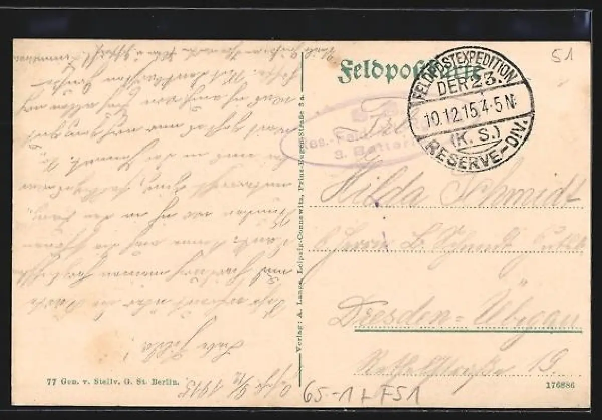 alte Ansichtskarte, gelaufen 1915 als Feldpost, guter Zustand