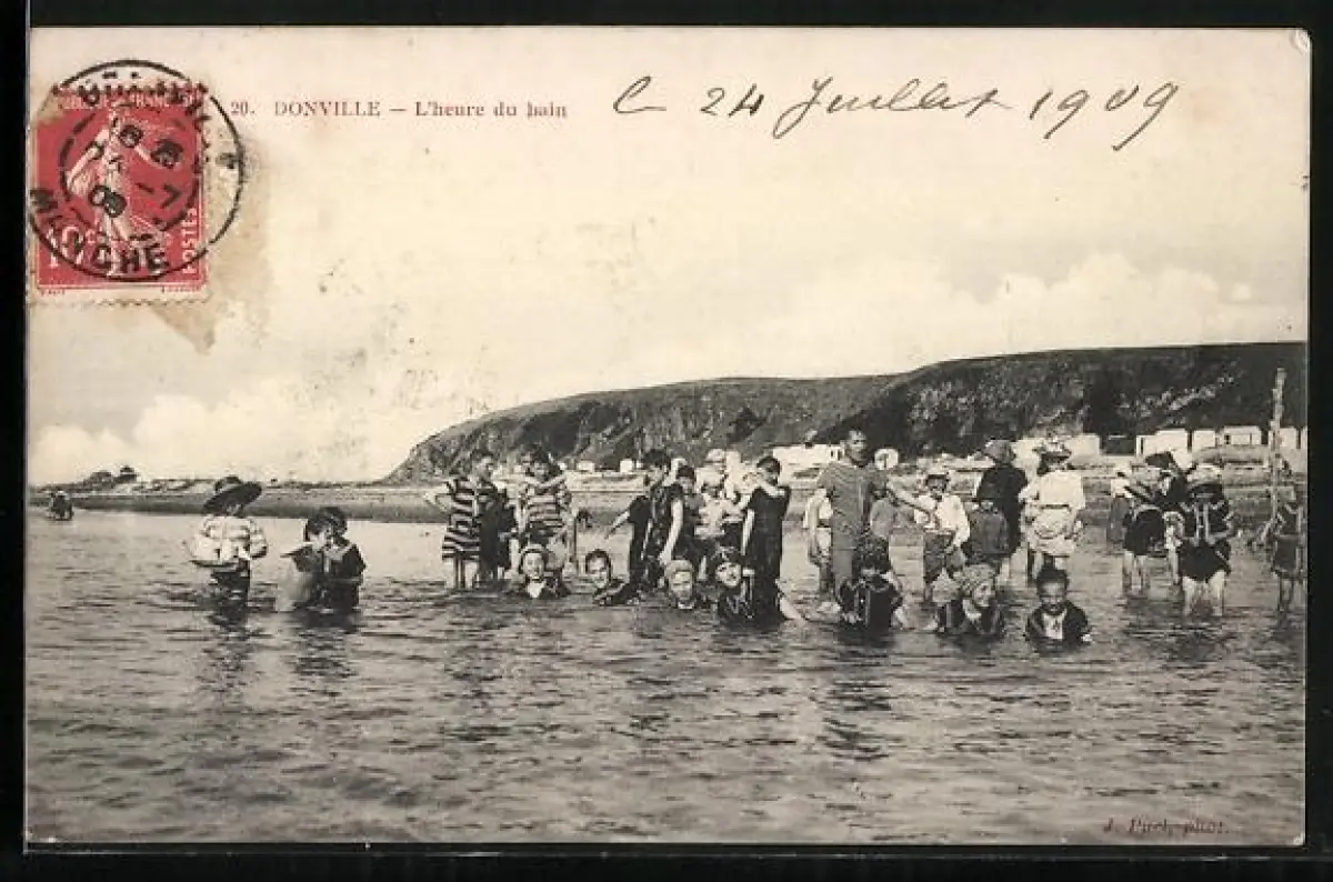 AK Donville, L`heure du bain à la plage avec des baigneurs en tenues traditionnelles