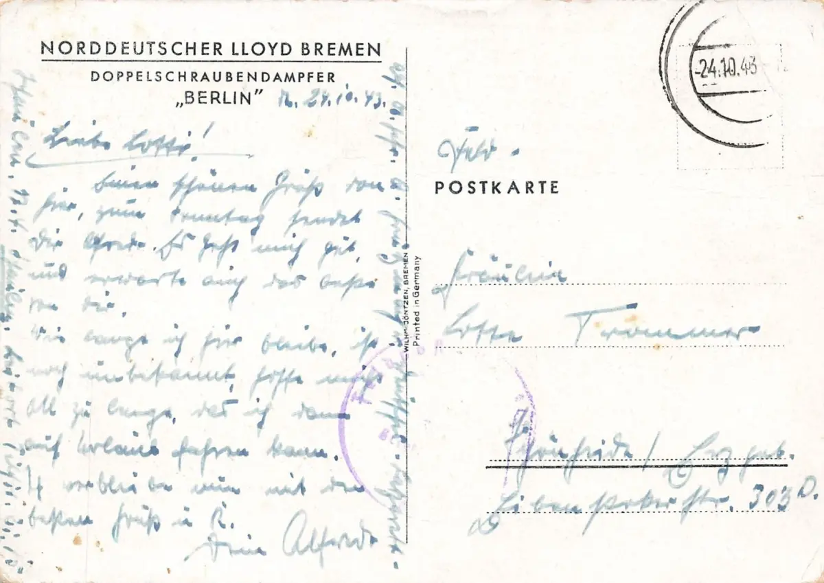 AK Doppelschraubendampfer Berlin Norddeutscher Lloyd Bremen 1943 Postkarte