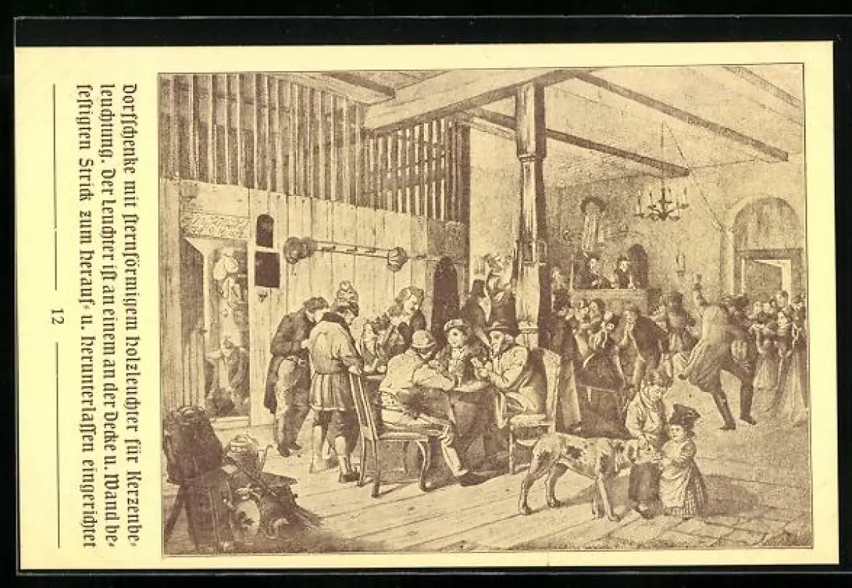 AK Dorfschenke mi Sternförmigem Holzleuchter für Kerzenbeleuchtung