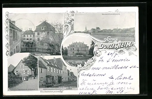 AK Dorlisheim, Restaurant zum Bahnhof, Weingut Villa Vogel, Alter Brunnen und Rathaus