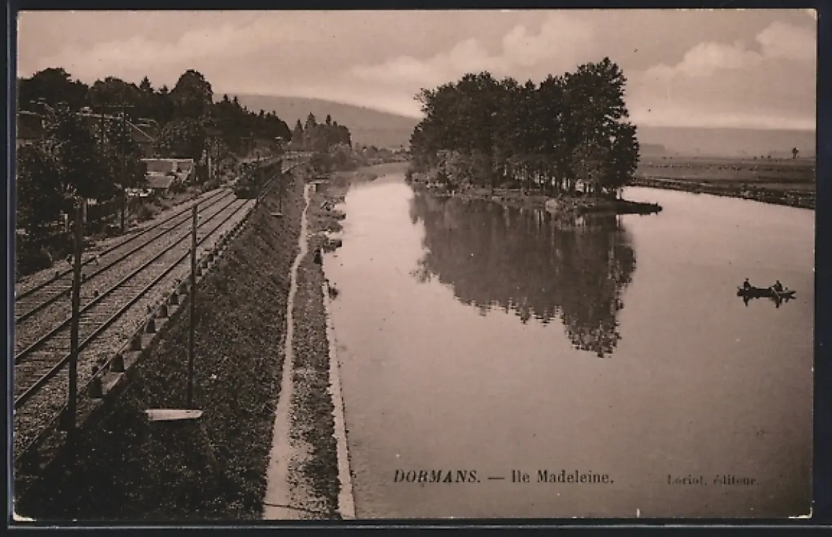 AK Dormans, Île Madeleine et voie ferrée au bord de la rivière