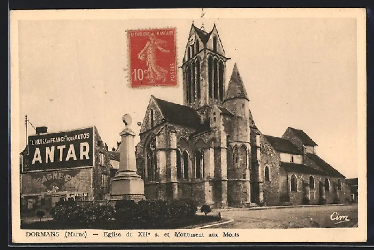 AK Dormans /Marne, Église du XIIe s. et Monument aux Morts