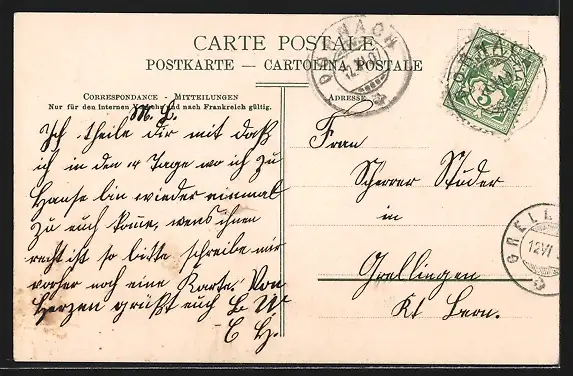 alte Ansichtskarte, gelaufen 1907, guter Zustand