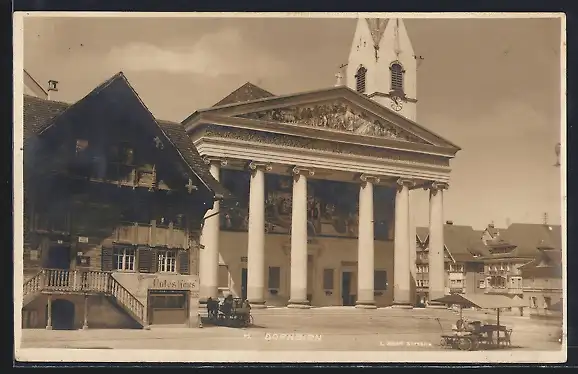 AK Dornbirn, Ortsansicht mit Weinstube und Kirche