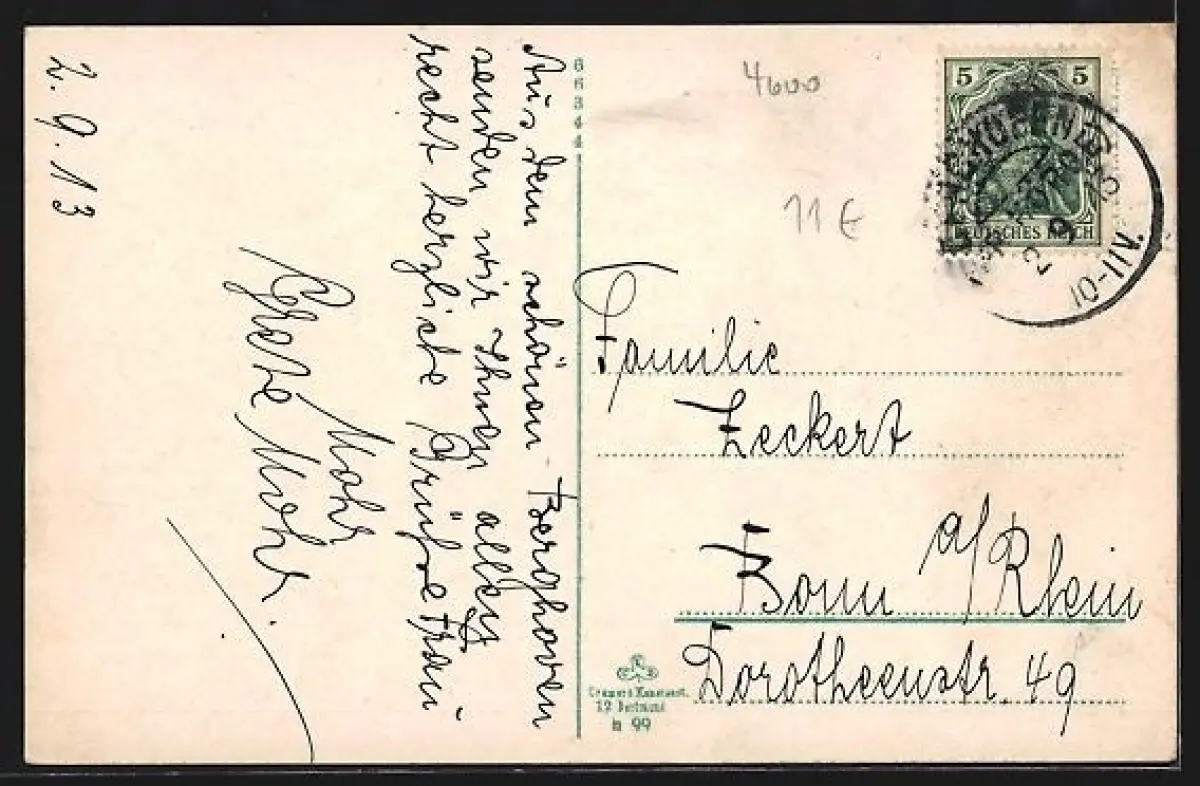 alte Ansichtskarte, gelaufen 1913, Stempelspur, guter Zustand