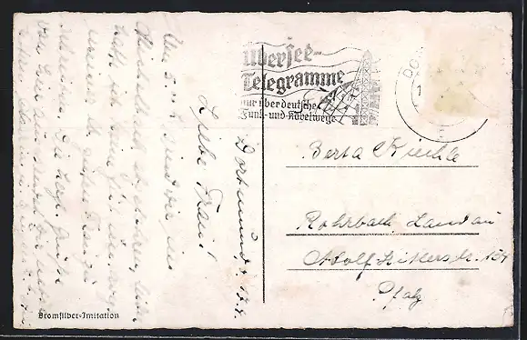 alte Ansichtskarte, gelaufen, Briefmarke entfernt, rückseitig Oberflächenschaden, guter Zustand