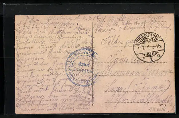 gelaufen 1918 als Feldpost, guter Zustand