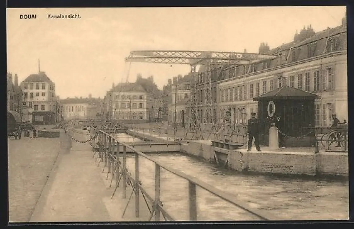 AK Douai, Vue sur le Canal, Partie am Kanal, Leute