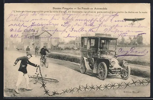 AK Douane Francaise, La Fraude en Automobile Auto Zollkontrolle