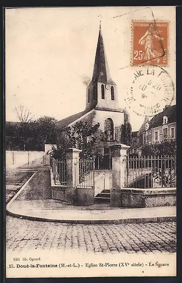 AK Doué-la-Fontaine, Église St-Pierre (XVe siècle) et le square