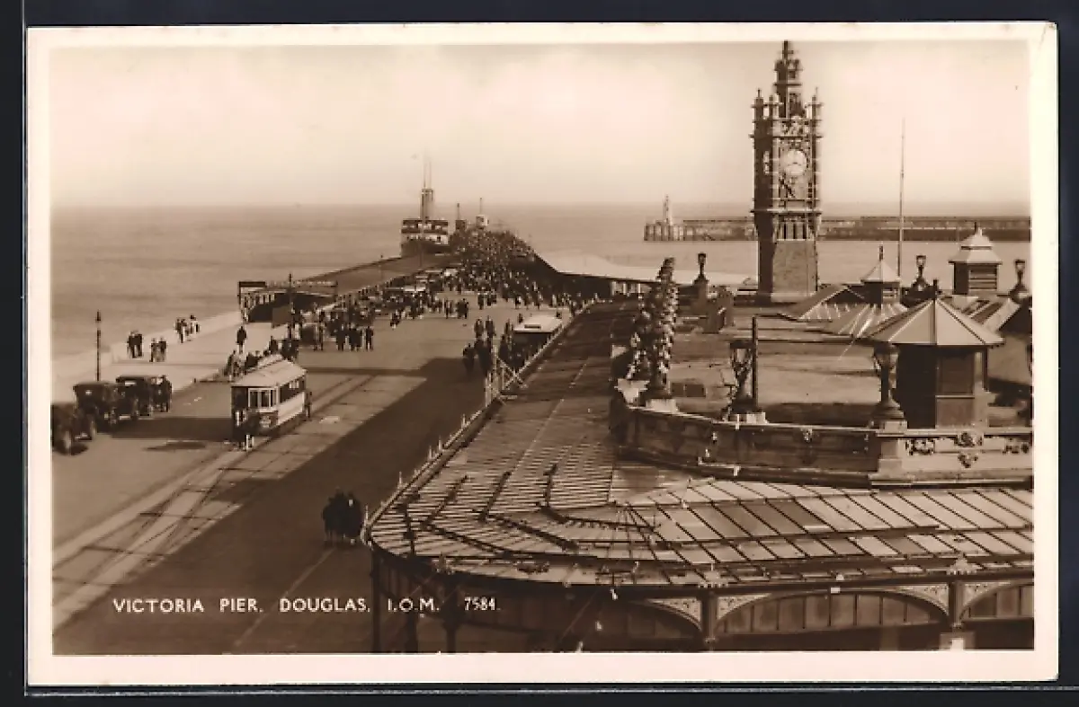 AK Douglas, Victoria Pier, Strassenbahn