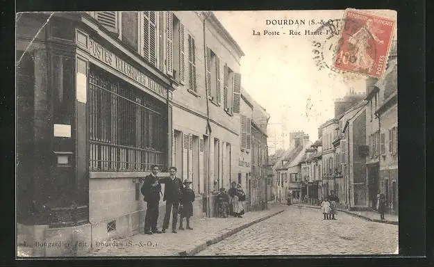 AK Dourdan, La Poste, Rue Haute
