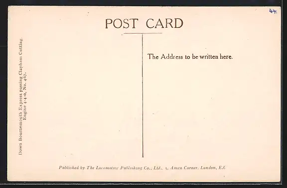 AK Down Bournemouth Express passing Clapham Cutting, Engine No. 467, Britische Eisenbahn