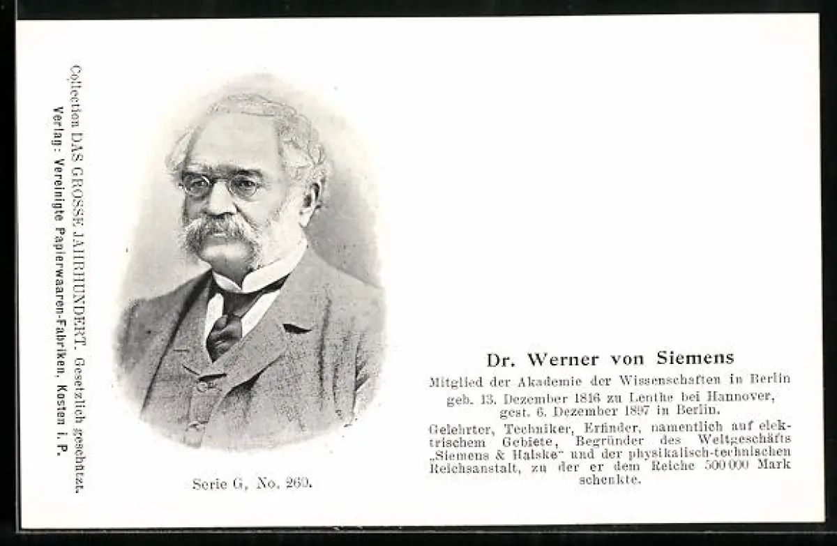 AK Dr. Werner von Siemens, Gelehrter Techniker, Erfinder, geb. 13.12.1816, gest. 6.12.1897